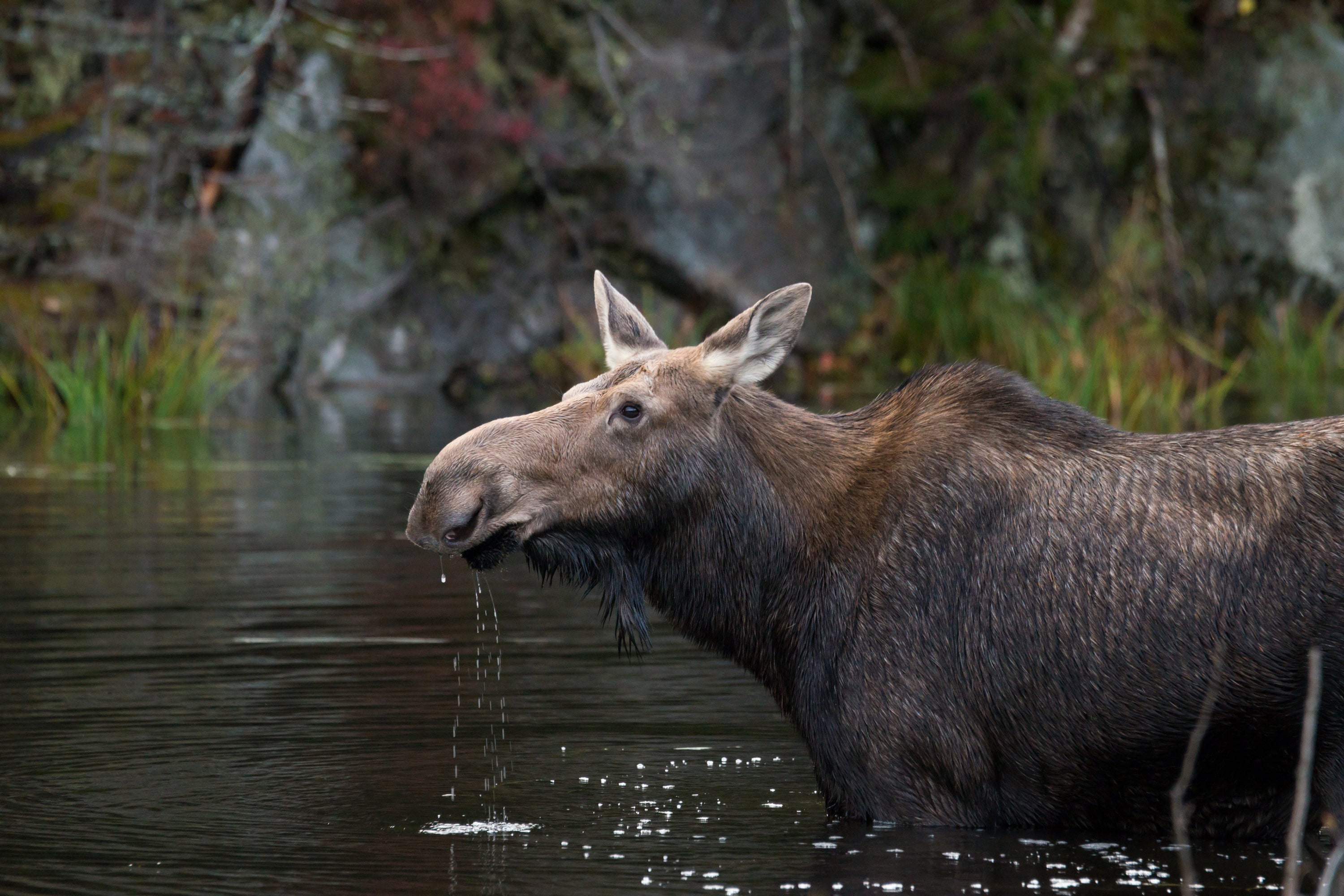 The sounds of her eating the water grasses are slowly slipping from memory but I will never forget the experience. I sat and watched as she fed, waiting for her calf to come and join her. And the calf did indeed come join her; it walked right where I was standing. I had to step away from my camera so that I would not interfere with their natural movement in the area and it almost cost me a camera deciding not to move it as the moose walked by within inches of my tripod.