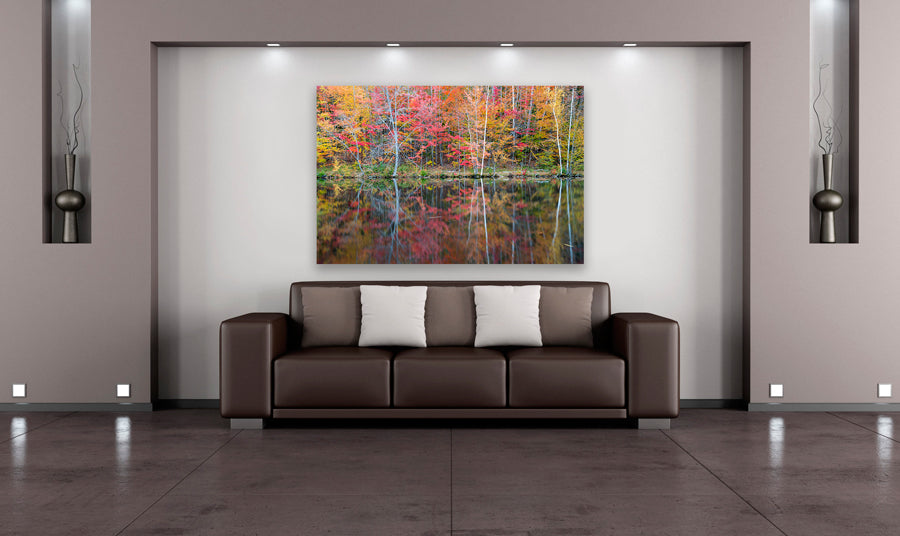 While searching for a location to shoot sunset outside Lincoln, New Hampshire, I popped over a ridge and ran along this small pond while there was still enough light to get the shot.  Reds were everywhere on this trip, but the pinks are what make this location special.