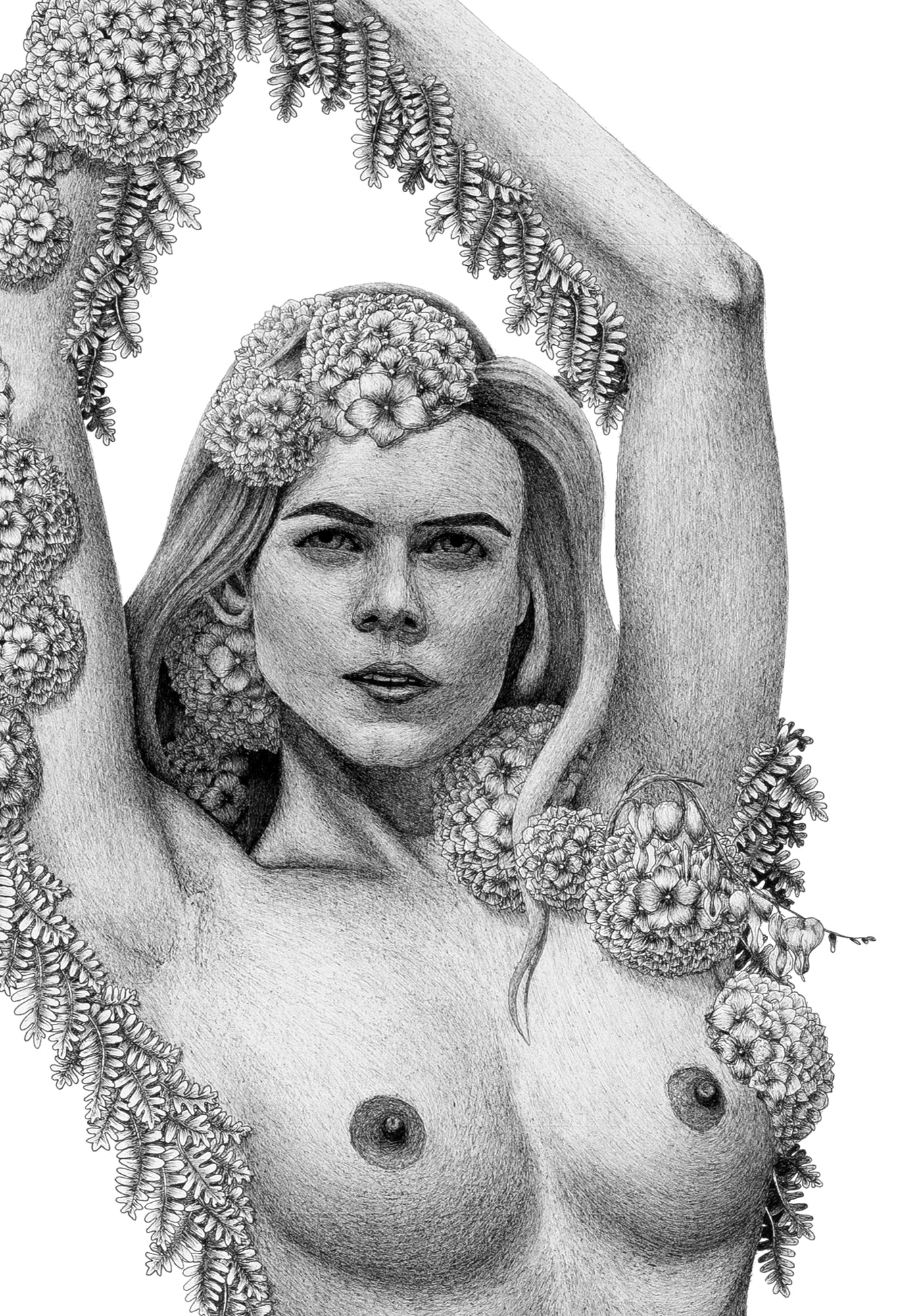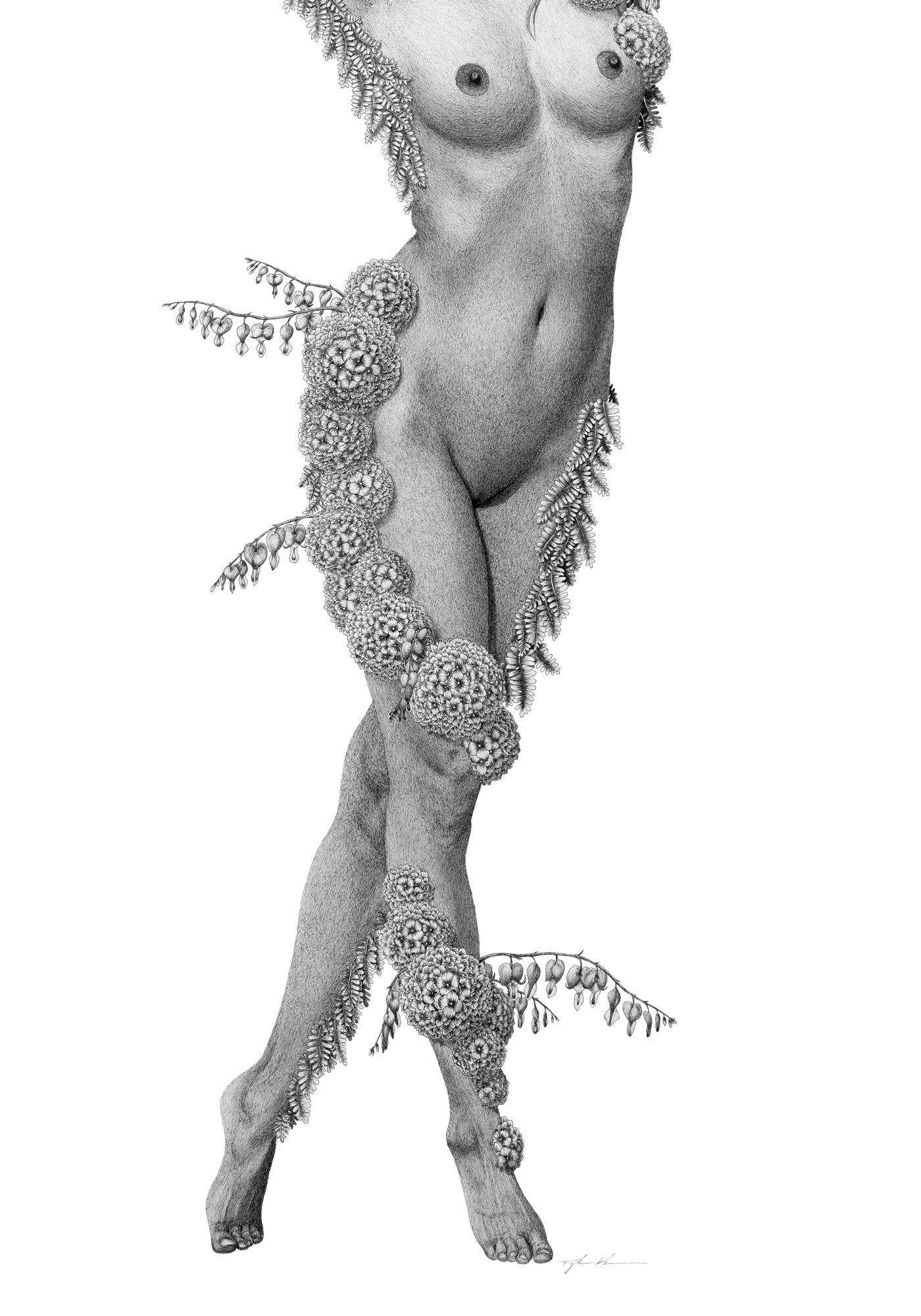 From the Mist combines the beauty of the feminine body with the beauty and delicacy of the shade loving plants hydrangea, bleeding heart, and fern.