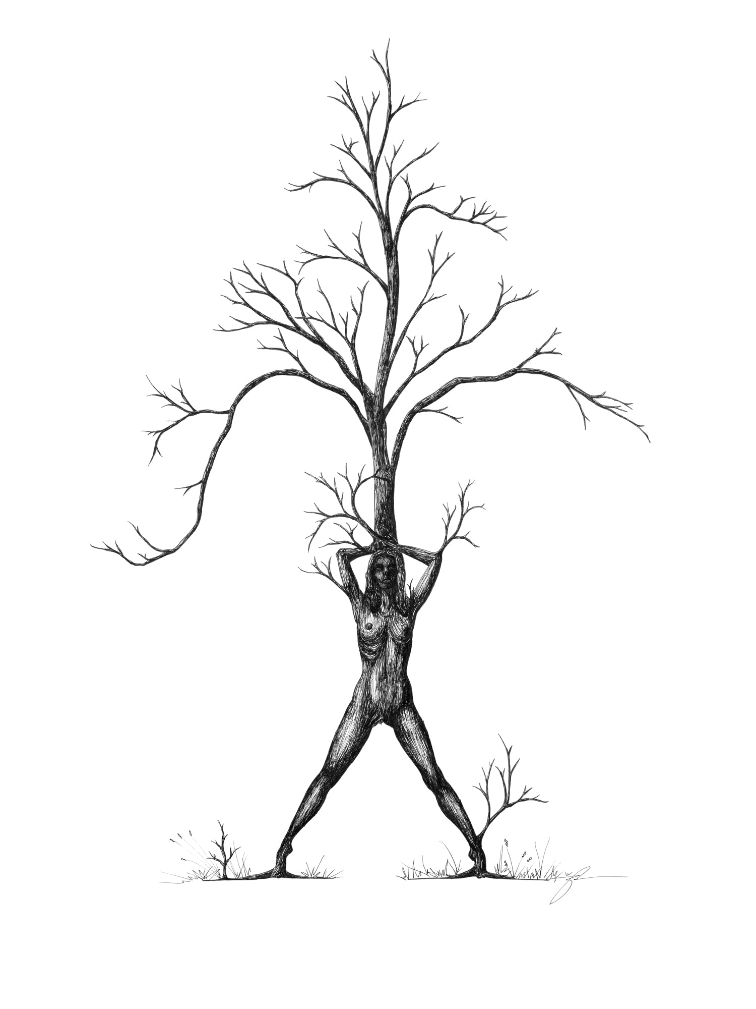 A woman stands in a powerful and haunting representation of Mother Nature.